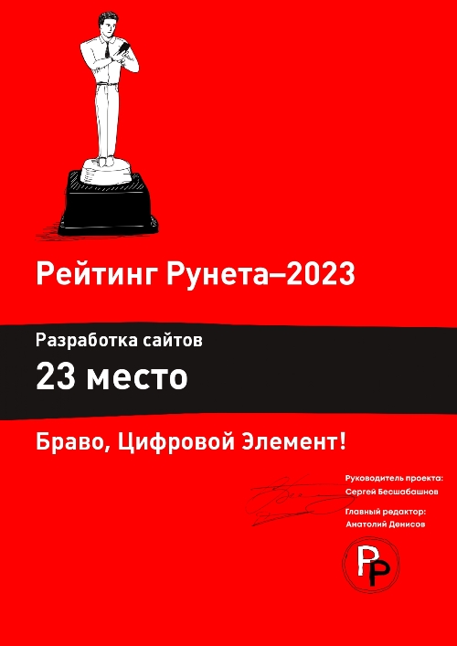 Год от года компания «Цифровой Элемент» оказывается в топе лидеров отрасли, а это значит, что мы повышаем уровень качества услуг, развиваем технологии разработки и можем конкурировать с крупными компаниями по всей России.
