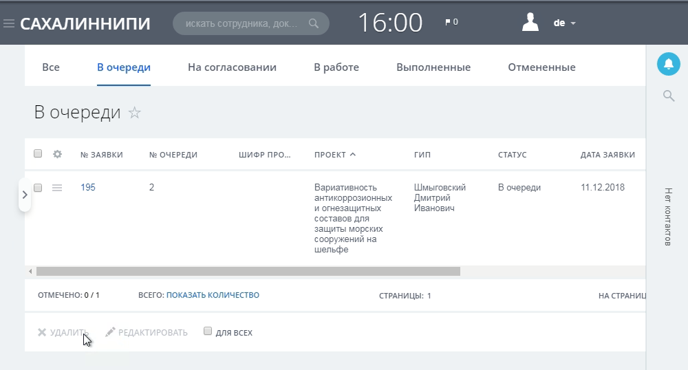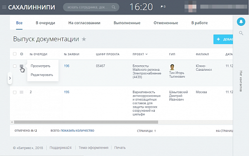 Запрос на результат работ -
